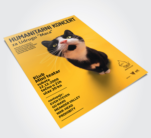 Plakat za Udrugu "Maca" za humanitarni koncert. Prikupljena sredstva od party-a idu na sterliziaciju mačaka na području Osijeka.
